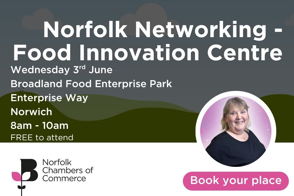 Join us at Broadland Food Innovation Centre for a session of networking. Agenda 08:00 – Event Start and Networking 09:00 – Welcome by Norfolk Chambers of Commerce 09:30 – Networking 10:00 – Event Close